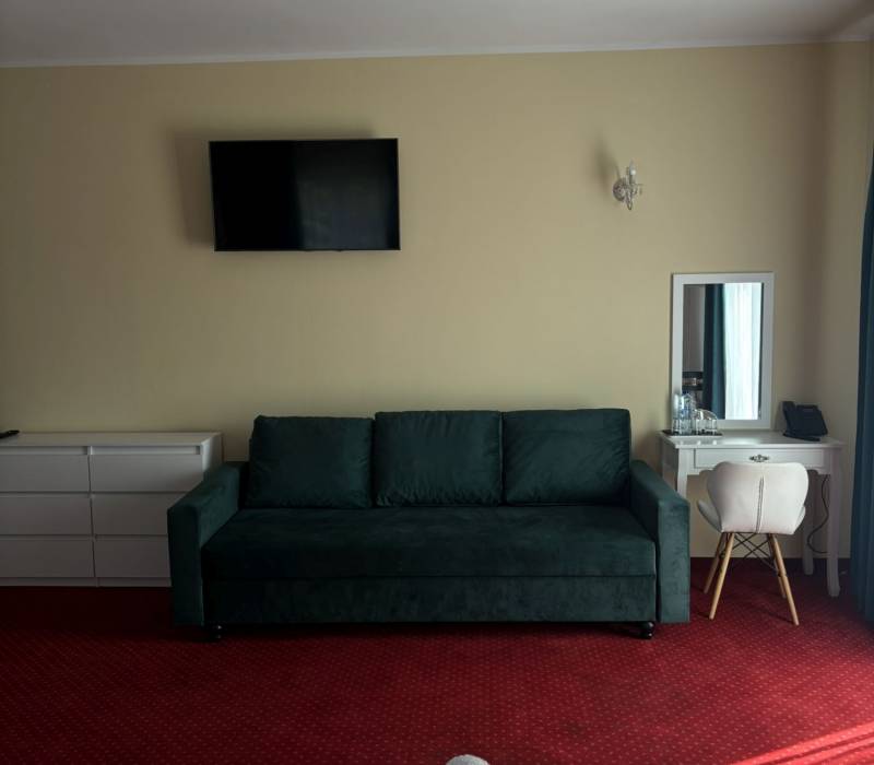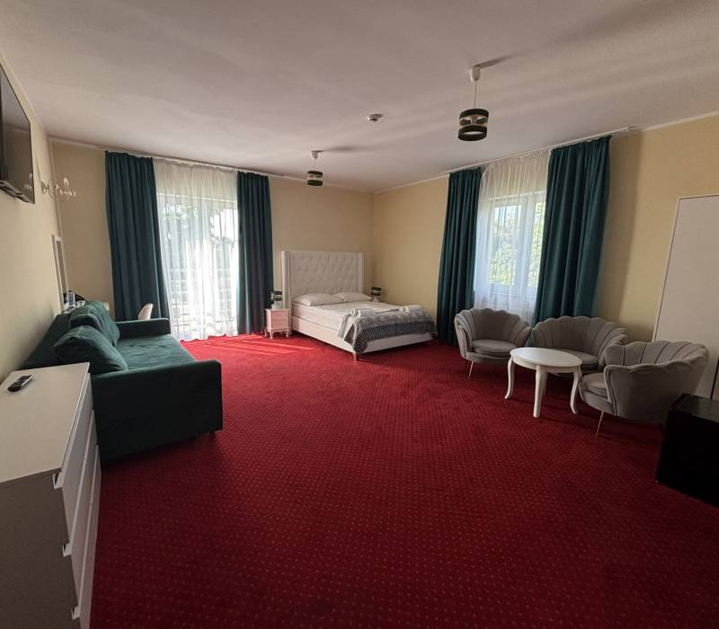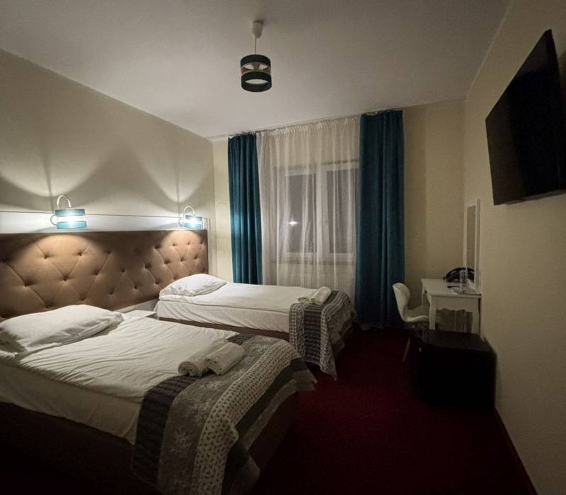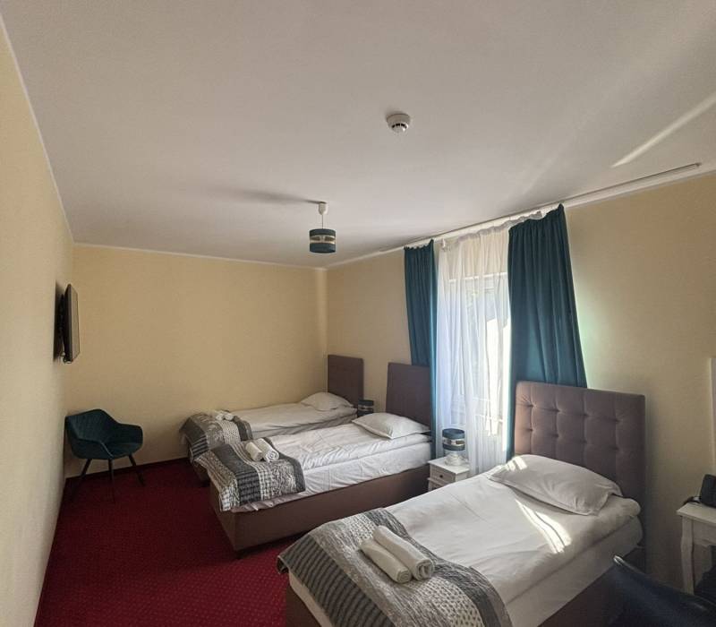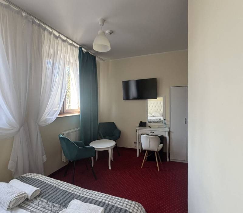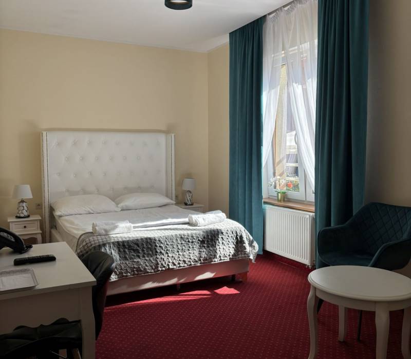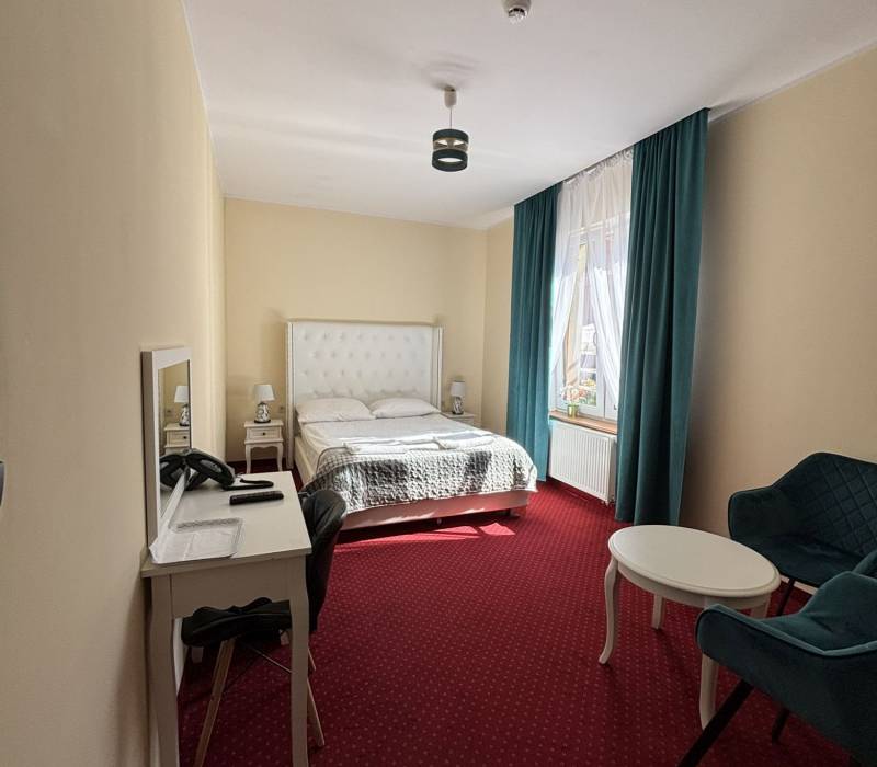 Pokój z łóżkiem typu king size. Do dyspozycji gości są zarówno pokoje jednoosobowe, dwuosobowe, trzyosobowe, jak i apartamenty, aby sprostać różnym potrzebom. Każdy pokój wyposażony jest w klimatyzację, telewizję satelitarną, bezprzewodowy internet i łazienkę. Na terenie całego hotelu dostęp do internetu bezpłatnie. Posiadamy parking dla gości.
